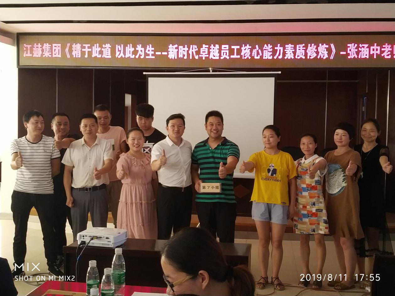 2019年8月11日上午9點,由湖北江赫集團舉辦的《精于此道 以此為生——新時代卓越員工核心能力素質修煉》培訓正式開啟。來自江赫集團的100多名中高層管理人員參加了此次培訓。本次培訓特別邀請了國內知名培訓機構——聚成企業管理顧問公司張涵中老師親自主講。本次課程圍繞著如何“打造卓越員工素質、提升管理者素養”展開了深入的探討,以小組競賽形式,充分調動每一名學員的參與積極性。現場氣氛緊張而活躍,有不少新穎的管理思路讓現場學員耳目一新,受益匪淺!雖然天氣炎熱,但現場交流的熱度更高。伴隨著本次競賽小組前三名的公布,此次培訓活動圓滿結束。會后大家合影留言,定格這美好瞬間。期待下次再會!