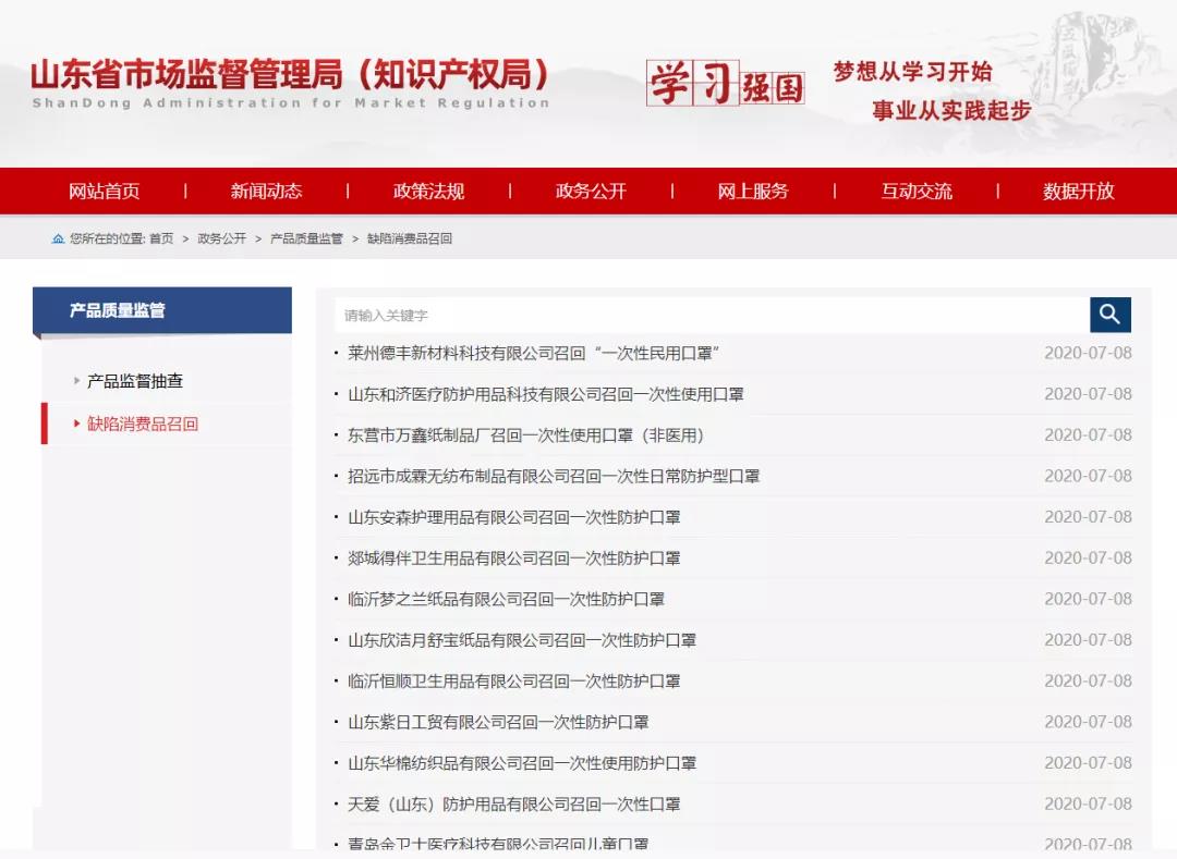 日前,萊州德豐新材料科技有限公司按照《消費品召回管理暫行規(guī)定》的要求,已主動向山東省市場監(jiān)管局報告了召回計劃,將自即日起,召回2020年3月15日期間生產(chǎn)的過濾效率低于國家相關(guān)標(biāo)準(zhǔn)的“一次性民用口罩”,涉及數(shù)量2000只。