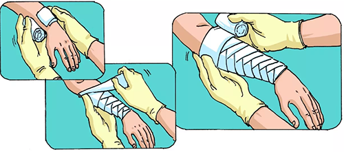 · 先將繃帶纏繞患者受傷肢體處兩圈固定,然后由下而上包扎肢體,每纏繞一圈返折一次。