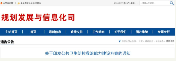 來源:賽柏藍器械 編輯:米克 采購潮即將襲來 NO.1 日前,國家衛健委等3部門發布《公共衛生防控救治能力建設方案》(以下簡稱《方案》),印發各省、自治區、直轄市及...